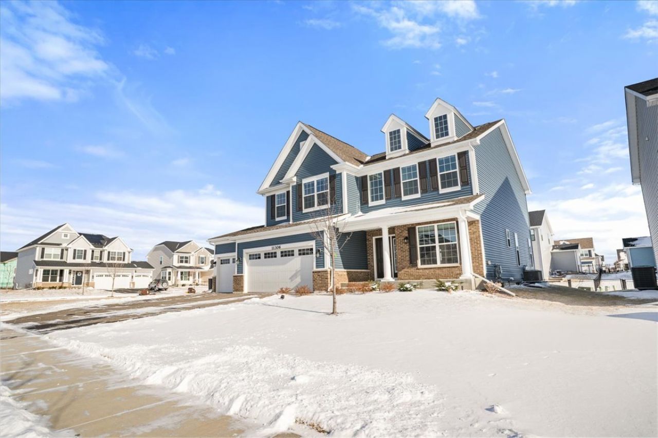 Welcome home to 11306 Kinney Way, an exceptional newer construction residence in sought-after Huntley! Featuring the popular Eastman floor plan by M/I Homes, this stunning property blends timeless elegance with modern design and thoughtful functionality. Boasting a beautiful Colonial Revival exterior, this home offers a spacious, heated 3-car garage, 4 bedrooms, 2.5 bathrooms, a main-level flex room, 9-foot ceilings, and a full basement, providing space and versatility for today's lifestyle. Step inside to a dramatic two-story foyer that sets the tone for the impressive interior. Entering from the garage, you'll appreciate the convenient mudroom with drop zone, perfect for organization and everyday living. At the heart of the home is the gourmet kitchen, featuring 42 white cabinetry, a contrasting island, quartz countertops, designer backsplash, and a full suite of GE stainless steel appliances, including a smart refrigerator, double oven, cooktop, microwave, dishwasher, and brand-new washer and dryer. This space is ideal for entertaining, hosting family gatherings, and enjoying daily life. Just off the kitchen, a planning center provides the perfect workspace for homework, remote work, or managing household tasks. The main level showcases wood-look laminate plank flooring throughout, leading into the inviting family room with a fireplace and elegant three-piece mantel, creating a warm and welcoming atmosphere. Upstairs, you'll find the luxurious owner's suite and three additional bedrooms, each with its own walk-in closet. The spa-inspired owner's bath features a separate soaking tub and shower for ultimate relaxation. Recent upgrades include new window casings, custom blinds throughout, and brand-new chandeliers. The home has been freshly painted, all bathroom fans have been replaced, and every closet features newly installed shelving. Additional highlights include a full basement with rough-in plumbing for a future bathroom, a rough-in radon system, and an insulated smart home system, offering comfort, efficiency, and future potential. This home stands out on the block with professionally installed exterior night lighting and a full irrigation system-features found in only a few neighboring properties. Enjoy enhanced curb appeal, added security, and a beautifully maintained lawn all season long. These premium upgrades offer both comfort and lasting value. This home delivers elegant design, modern amenities, and exceptional craftsmanship in one of Huntley's most desirable communities. A rare opportunity to own a beautifully upgraded, move-in-ready newer construction home-don't miss your chance to make this incredible property yours!