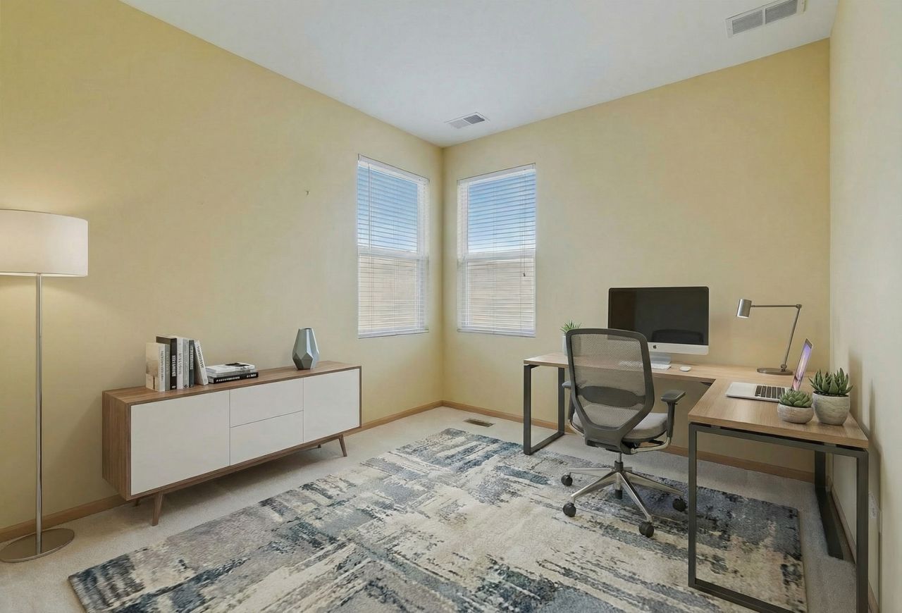Enjoy maintenance free living in this charming Del Webb Osceola~The Osceola is the most popular & largest townhome of the Del Webb original townhomes~Spacious living & dining room layout with high ceilings & bay window that create an open airy feel with slider to the deck~2 Bedrooms PLUS a Den for a home office or a quiet private retreat~The Kitchen is large & bright featuring Oak cabinets with under cabinet lighting, ceramic tile, newer Bosch Dishwasher, oven & microwave~Primary Suite includes ceiling fan, Hunter Douglas silhouette blinds, walk-in closet & linen closet, bathroom w ceramic tile & walk-in shower~New roof & gutters~Water Heater 2024~Laundry sink~Come join the fun in Sun City's 55 & over resort like community with all of the amenities~2 outdoor pools~2 exercise facilities~Walking & bike trails~Indoor walking track~Pickleball, tennis, & bocce courts plus so much more!