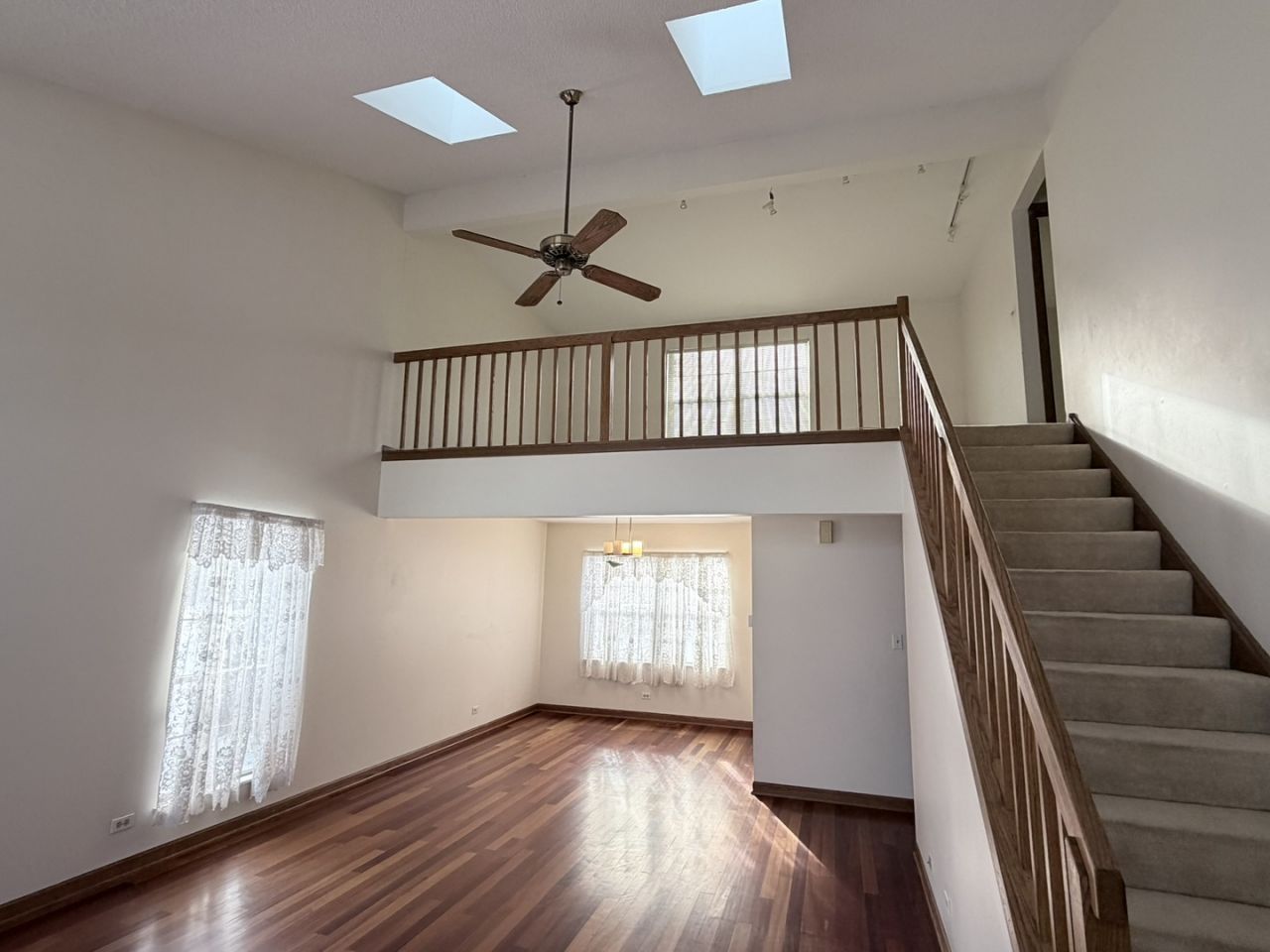 Bright and Spacious home features gleaming Brazilian cherry hardwood floors and cathedral ceilings. 2 Story living room with bright skylights. Kitchen with granite counters and eating area. Family room with cozy fireplace and sliders to huge yard! Updated ceiling fans, and recessed lighting. First floor master bedroom with full bathroom and walk in closet. 2 bedrooms on 2nd floor and dramatic large loft overlooks living room. High Efficency furnace,A/C and Water heater with true HEPA filter and humidifier. Quiet Cul-de-sac location and close to shopping, restaurants, grocery, golf course. Easy Access to I-90 and 15 minutes to Woodfield Mall. Great Schools and Great Location! Available Immediately! Rent includes grass cutting.