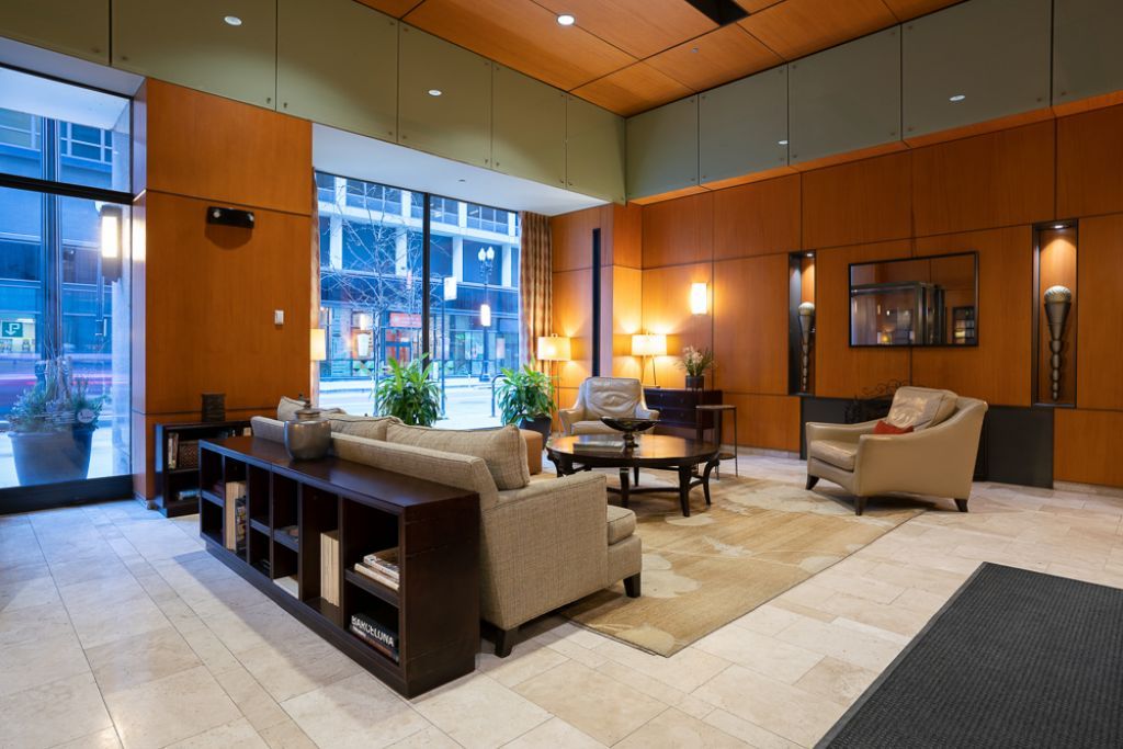 A stylish lofted 1 bed + den that lives like a true 2 bedroom in the heart of the Loop. PREMIUM PARKING SPACE INCLUDED! Open-concept layout with private balcony, gas fireplace, and high ceilings. Spacious den functions perfectly as a second bedroom or office. Updated kitchen with stainless steel appliances and painted cabinetry. In-unit washer/dryer makes this cozy home complete and move-in ready. Full-amenity building with fitness center, business center, rooftop deck, and storage. Steps to River North, the Lake, dining, theaters, shopping, and CTA. Come see it before it's gone!