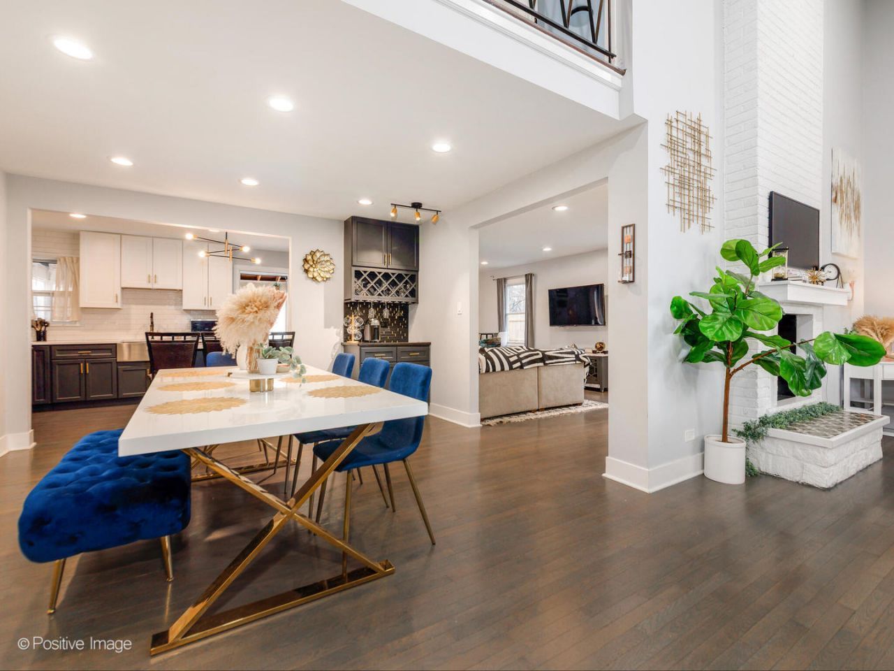 Completely updated and beautiful, stunning custom two-story home featuring 4 bedrooms, 3 full bathrooms, and an attached 2-car garage in super desirable Wood Dale neighborhood. Large, open floor plan with rich hardwood flooring throughout dramatic cathedral styling ceilings welcome you as you step into this home leaving an unforgettable impression. Well designed chef's kitchen with 42-inch solid wood, custom cabinetry blended with white Quartz countertops, premium stainless steel appliances; Stove/range with hood, pot filler, walk-in pantry, and an oversized island with breakfast bar. Also, you have a custom coffee and wine bar enhances the space. Large living room has Striking dual-sided, all brick to the ceiling fireplace adds exposed to the living room and family room. Large family room and perfectly positioned dining rooms. The main floor includes guest bedroom and full bath. Second floor offers custom-designed laundry room. Also, a spacious primary suite featuring a luxurious ensuite bathroom and two more guest bedrooms with gorgeous guest bathroom. Recent updates include a new rear porch (2023), a high-efficiency water heater (2024), and everything else was remodeled a few years ago. Enclosed 3 seasons room off the back of this home. Large rear oasis with patio and lush greenery. Ideally located near parks, restaurants, highly rated schools, and major highways. Just 15 minutes from O'Hare International Airport and a short 10-minute walk to the train station with direct service to downtown Chicago in approximately 30 minutes, the location is highly desirable.