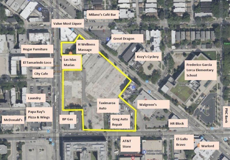 Incredible development opportunity. Belmont Triangle site in Avondale. Approx. 3.28 acres parcel at Belmont Ave, Milwaukee Avenue and Pulaski Road. | Strauss Realty, Ltd. is proud to offer a rare opportunity to redevelop a substantial, 3.28 acre contiguous site in the heart of Avondale-bordered by Pulaski Road (20K VPD), Belmont Avenue (16K VPD), and Milwaukee Avenue (17K VPD). This prominent parcel is ideally suited for a higher-density, mixed-use development that could include residential units, a grocery store, restaurants, bars, entertainment venues, or even a lifestyle center with community-focused retail. Formerly home to industrial buildings, small businesses, and auto-related uses, the site is now largely vacant -creating a noticeable gap in Avondale's commercial landscape. Recognizing its potential, the previous alderman supported zoning changes to allow for four- to five-story buildings, signaling readiness for revitalization. There is strong community support for redevelopment, with the shared goal of transforming the Belmont Triangle into a vibrant, mixed-use destination that reflects the neighborhood's character and needs. A 2022 survey revealed that most respondents access the site by walking or driving, and expressed strong interest in open spaces along with dining and retail options. In 2022, the Department of Planning and Redevelopment designed three schemes (see brochure). As nearby neighborhoods like Logan Square and Bucktown continue to rise in cost, Avondale is becoming an increasingly attractive alternative for residents and investors alike. Demand for both residential and commercial uses remains strong, positioning this site for significant returns. The site offers outstanding accessibility and exposure, with easy access to transportation including I-90/94, the Belmont Blue Line station, and the Irving Park Metra station. The surrounding neighborhood features a mix of community assets such as schools, churches, and a range of active retail establishments, reinforcing the site's potential for impactful mixed-use development. Nearby tenants include Las Islas Marias, Walgreen's, CVS, HR Block, BP Gas, AT&T Store, McDonald's, PNC Bank, shops, laundry and dining. Development incentives include eTOD, NOF, TIF, LIHTC, federal subsidies grants and loans, Cook County Tax Incentives for Class 7A, 7B and L properties. The population within 1 mile is 44,014 with 17,021 households and average household income of $97,116.