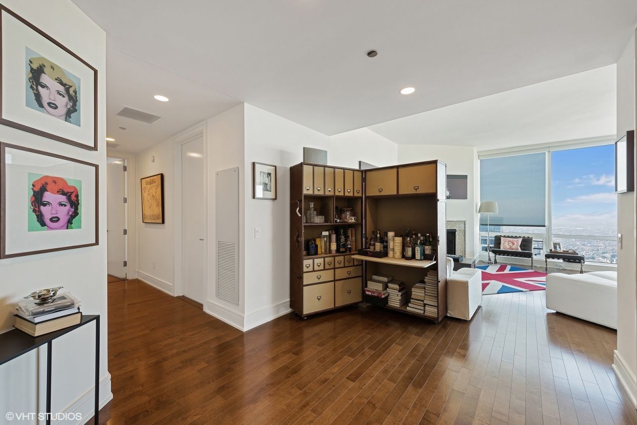 Exquisite two-bedroom, two-and-a-half-bath residence offering 2,022 square feet of refined living space with soaring 10-foot ceilings and floor-to-ceiling windows showcasing stunning north and west views of the city skyline and lake. The gourmet kitchen features Snaidero cabinetry, a granite island, and professional-grade Wolf, Sub-Zero, and Miele appliances, ideal for both everyday living and entertaining. The spacious primary suite includes a private den or work area, spa-inspired bath with dual vanities, an expansive glass-enclosed shower, a romantic fireplace, and a walk-in closet. Additional highlights include two fireplaces, Brazilian hardwood floors, a large laundry room, and generous storage space throughout. Residents enjoy resort-style amenities including a 14,000 SF state-of-the-art health club, designer dog run, full-service salon, and two on-site dining options, all within a premier full-service building offering a five-star urban lifestyle.