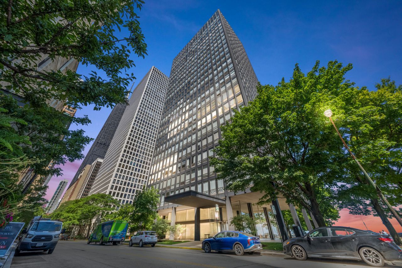 One-of-a-Kind Residence in Mies van der Rohe's Iconic Glass House! Welcome to residence 8L, a rare and architecturally significant home located in Ludwig Mies van der Rohe's renowned glass house. This architectural gem has been featured in Crain's Business Week and included in the National Trust for Historic Preservation's Living with Mies tour. Thoughtfully reimagined by acclaimed architect Vladimir Radutny, the condo has been meticulously renovated. Situated in a historically important Streeterville building, the home offers breathtaking city and lake views through floor-to-ceiling windows. Enjoy Navy Pier's weekly fireworks right from your living room. The interiors feature custom-cut, slate-gray Italian porcelain radiant-heated floors, frosted glass walls and doors, and in-wall color-adjustable light painting lighting. Lightology's line-of-light system sets the perfect ambiance for entertaining. The sleek, modern kitchen includes top-of-the-line appliances: Liebherr refrigerator, in-wall Miele induction oven and microwave, Bosch dishwasher, induction cooktop, and custom white lacquer cabinetry. Additional highlights include remote-controlled electric shades on all windows and ample custom closets throughout. Both bathrooms are outfitted with Robern floating sinks, large-format Thassos white marble wall tiles by Ann Sacks, Grohe fixtures, and Porcelanosa silent toilets. All bedrooms are generously sized and filled with natural light. This building offers exceptional amenities: 24/7 door staff and maintenance, on-site management, in-building heated garage with valet rental options, fitness center, and a party room. The location is unmatched-just steps from the lakefront trail, Oak Street Beach, and the best of world-class shopping and dining on Oak Street and the Magnificent Mile. Cultural attractions like Second City, Zanies, the Chicago History Museum, and the MCA are all within walking distance. This home offers a rare opportunity to own a piece of architectural history in one of Chicago's most desirable neighborhoods. Don't miss the chance to explore every detail-click the 3D button for a virtual walkthrough.