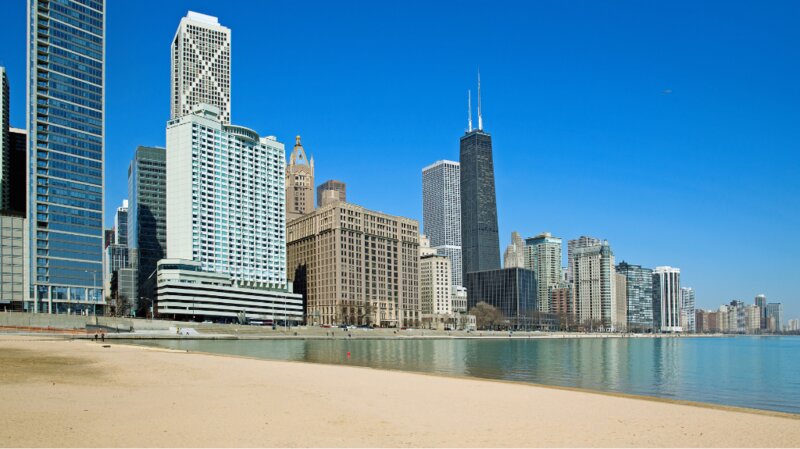 One of the closest beaches to Downtown Chicago, Ohio Street Beach is nestled just north of Navy Pier, adjacent to the